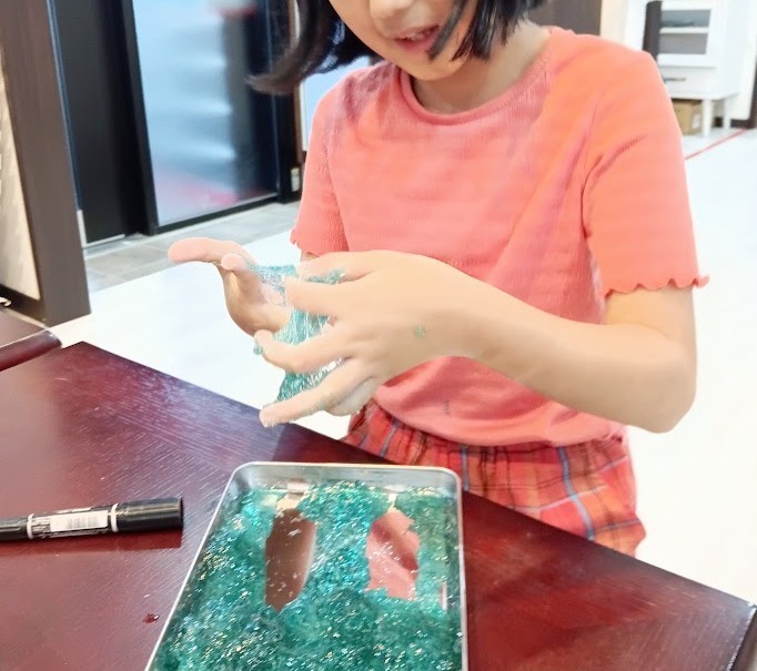 そのころ 久しぶりに スライム作りを していた Sさん。 前に作ったときは 納得