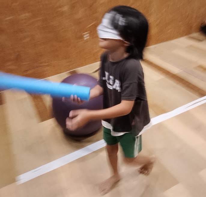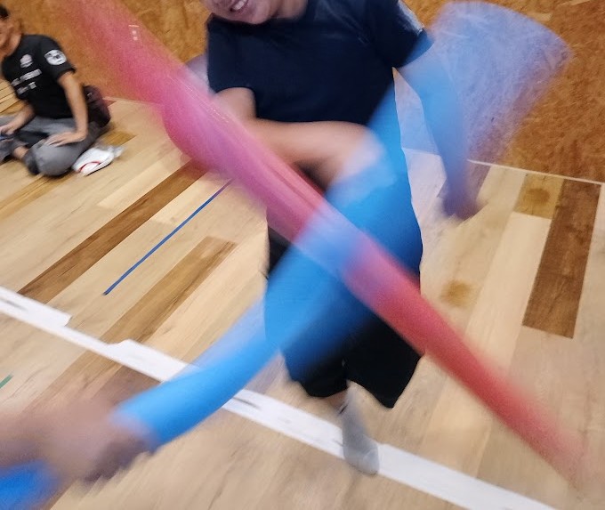 んですが なんか 動きたいな~ ということで プールスティックチャンバラ やろう!と