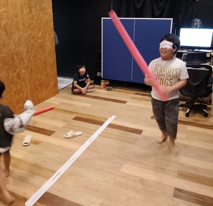 お次は めかくしオニ~👹 最初は SKさんが 鬼でスタート! 気配や足音、息遣いで