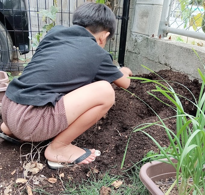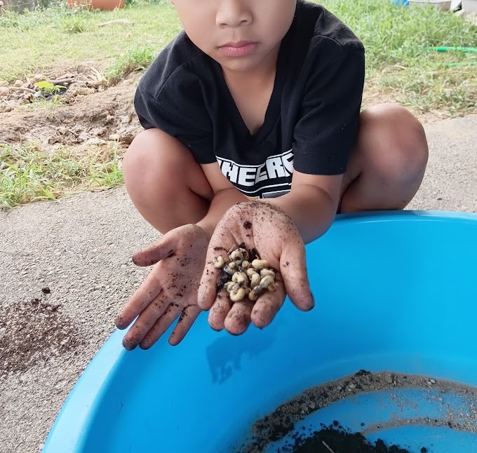 あったので レッツゴーぅ✊ 栄養たっぷりの 土(肥料)を 掘ってみると・・・ な、