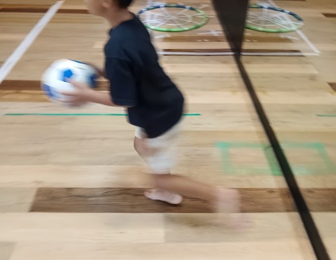 座って 相手にシュート してもらって・・・ という スリリングな 遊びを 思い