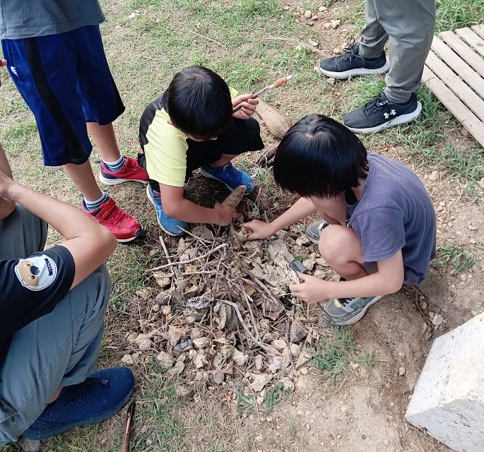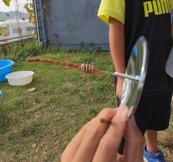 るから~!👍 宜しくお願いします~と 児童一同(≧◇≦)♪ 麻ひもを ほどいて 火種は