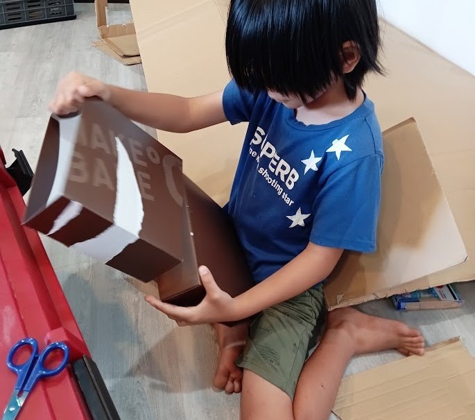 で なにしようかな~ 💡! 工作の 材料が 少なくなってきたし みんなで 買い物に~