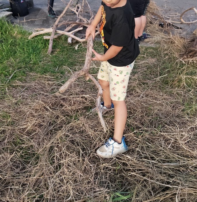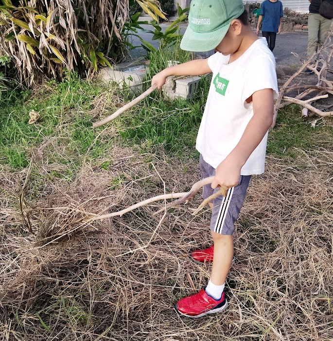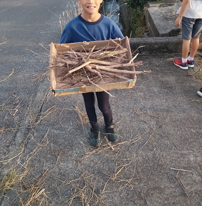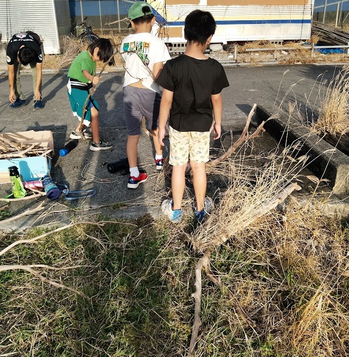 前回の 火起こしの際に 前に集めた木が なくなったので 次の来所時に みんなで