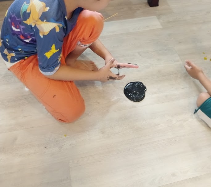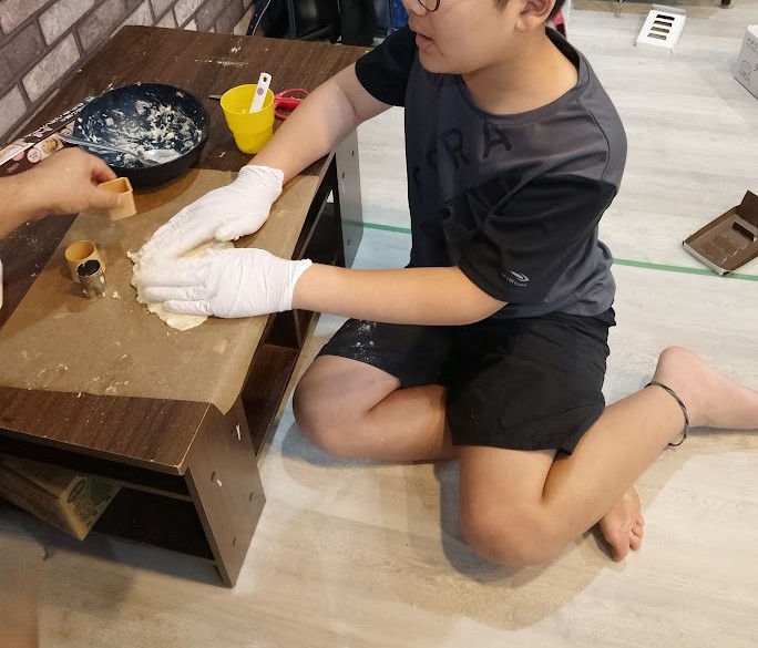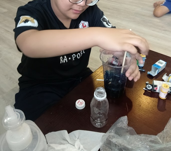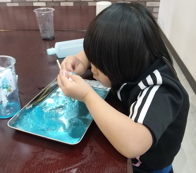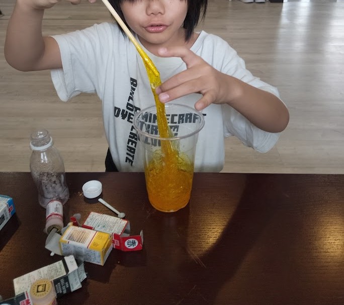 スライムとは 違った 感触のスライムを 作る児童が数名。 それを 見ても 自分は