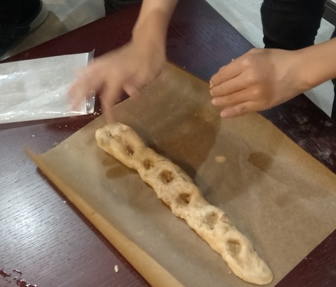 抜いて 作る児童、 パンの形に 作っている児童、 さかな?の エイの 形を 作る