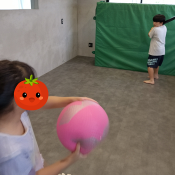 外から 帰ってきた Hさんと 一緒に ボーリングの球や ボールで 遊ぼうぜ~♪ となり、