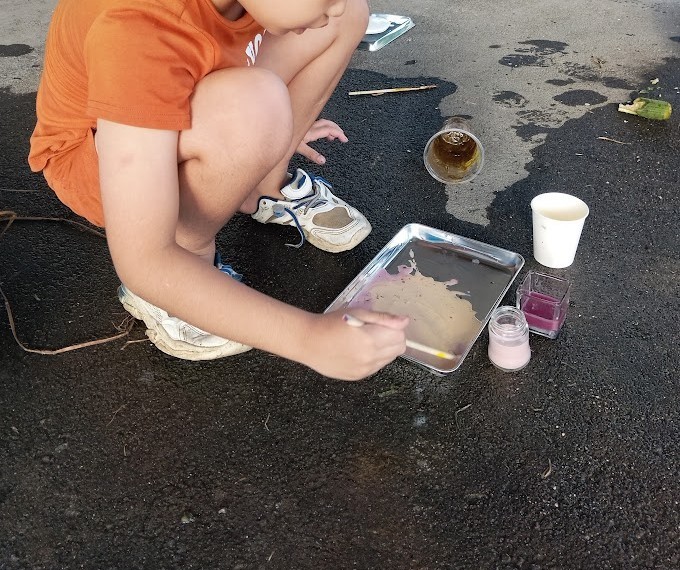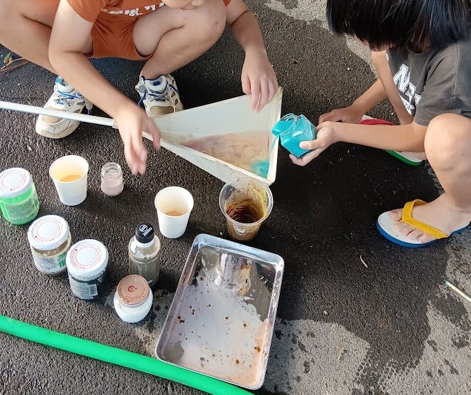まぜまぜ。 いろんな色を 作って 調合しておりました♪ 近くでは Rくんが 土を