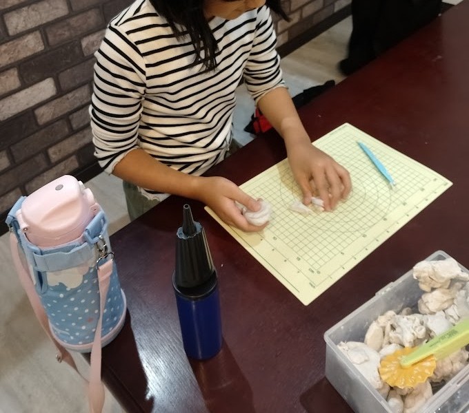 同じく スライムを 楽しんでいたのは Oさん。 今日は 真っ黒な スライムを 作る