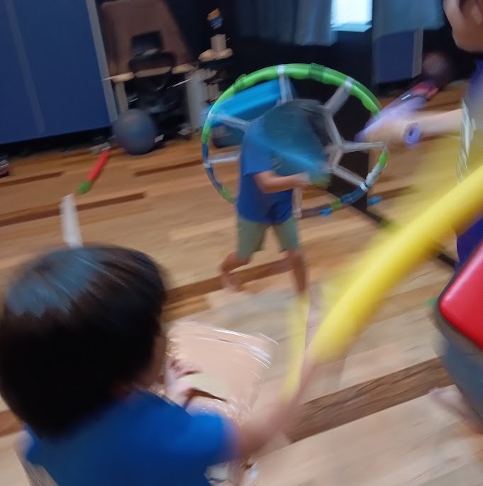 ご っ こ の 始まり はじまり~ (^O^)/ 各自、 プールスティックや ボクシング