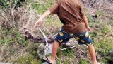 おれも いく~ と 始めたのは アルミ玉作り と つるはしを 使って 土掘り~ (^^♪