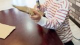 その横では Rさんが工作を 開始っ(^O^)! 前に 丸めていたポスターを 活用して 作成