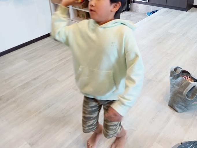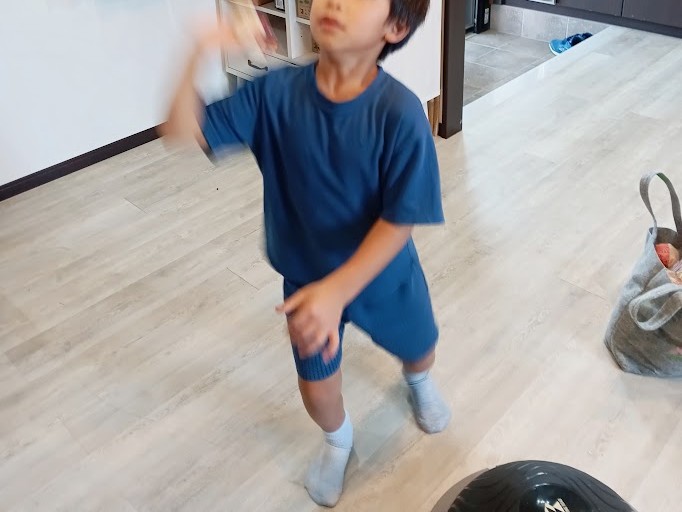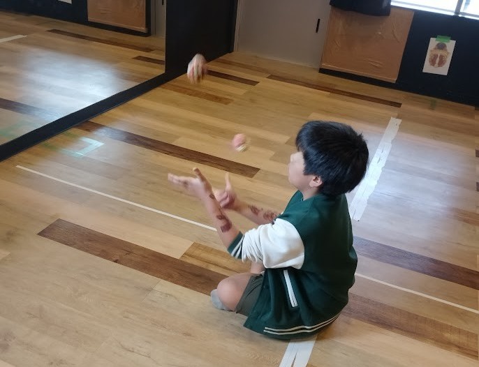 最後は Rくん。 今日は お手玉 3つを ジャグリングする! と 帰還してから 全集中!