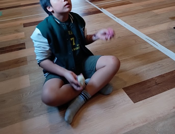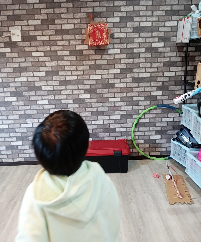 途中、 集中力が 切れたので 他児童と ちょっとだけ 「爆弾! ゲーム」を 楽しんだあと