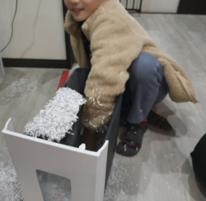 紙で紙吹雪~ と まき散らして 遊ぶ 児童が。 2人。 スタッフも 一緒になって 遊んで
