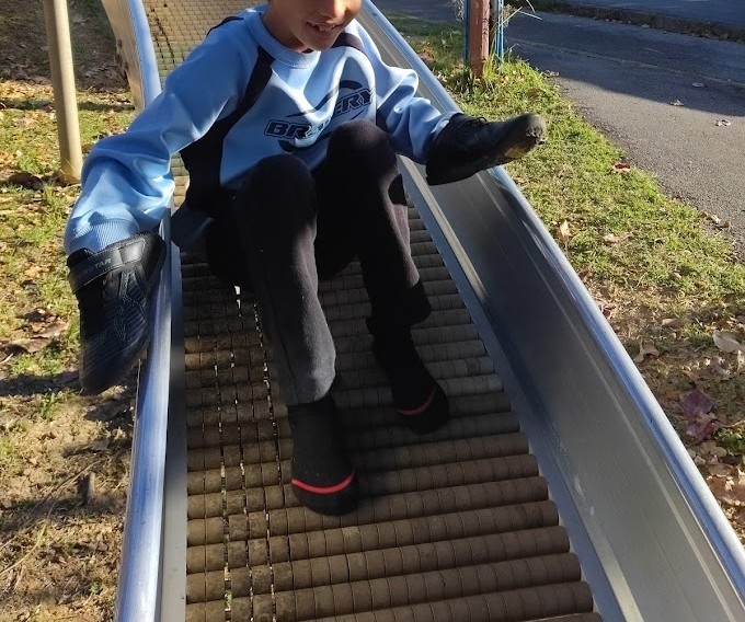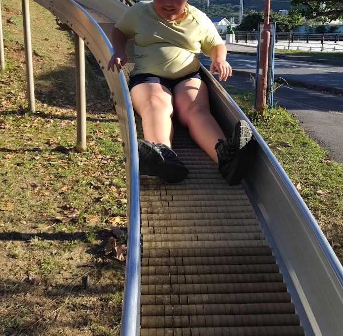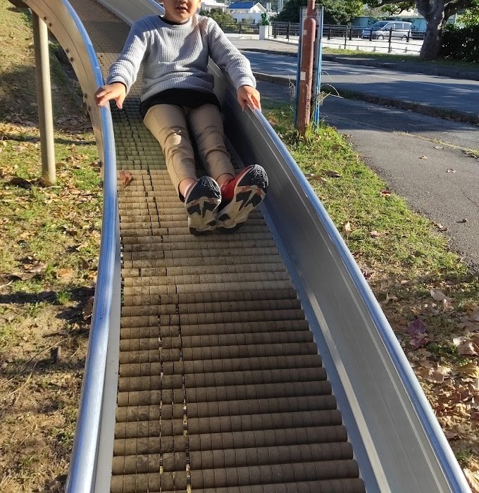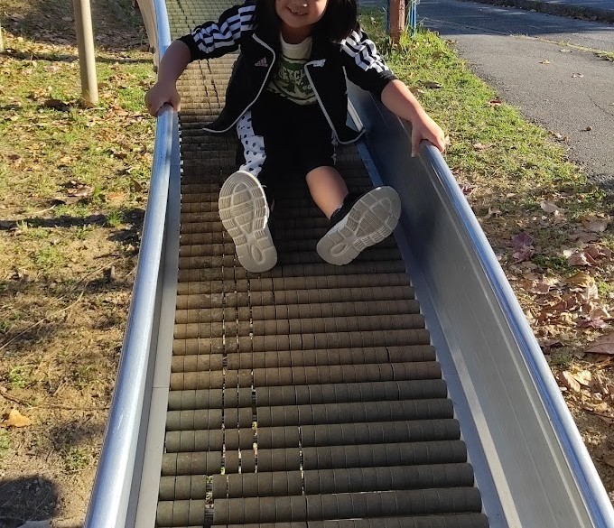 すべり台へ 走るぅ(=゚ω゚)ノ 一目散に 階段を かけのぼって すいーーーっ とね(^。^)♪