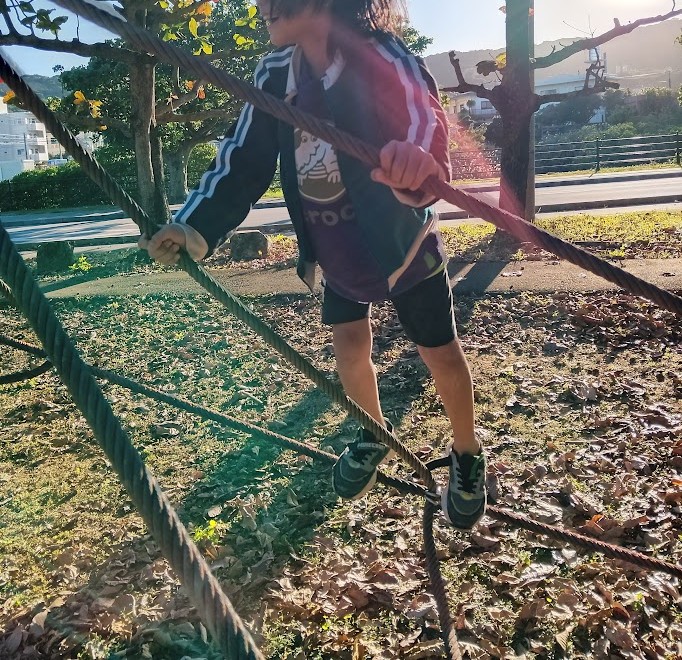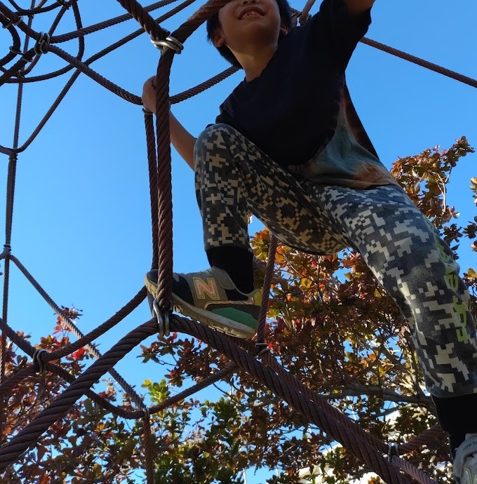 しんかい公園に 到着~っ! すると そっこーで 目に 入ったのは ザイルクライミング!