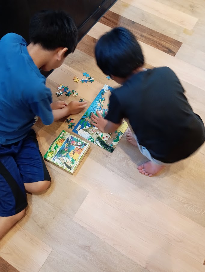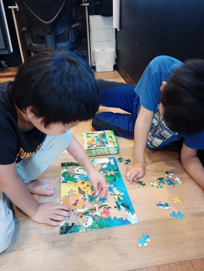 たってる~( ゚Д゚)! の そばでは ジグソーパズルを 4人で 協力して なんとっ! 10分