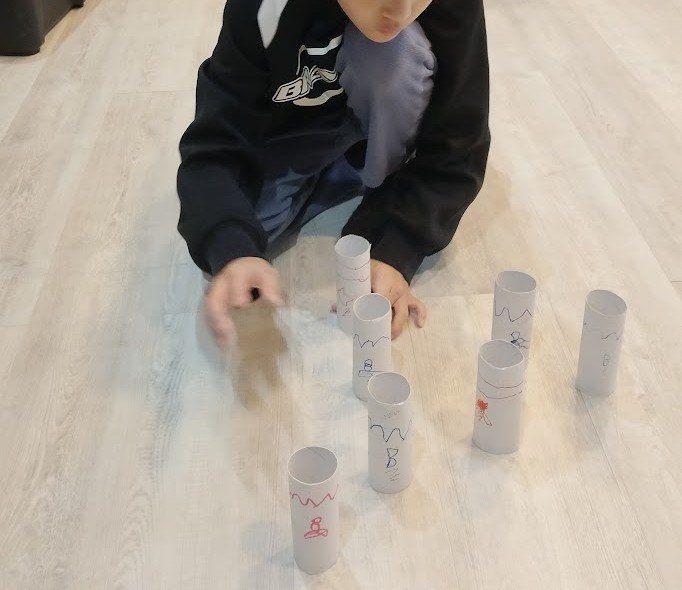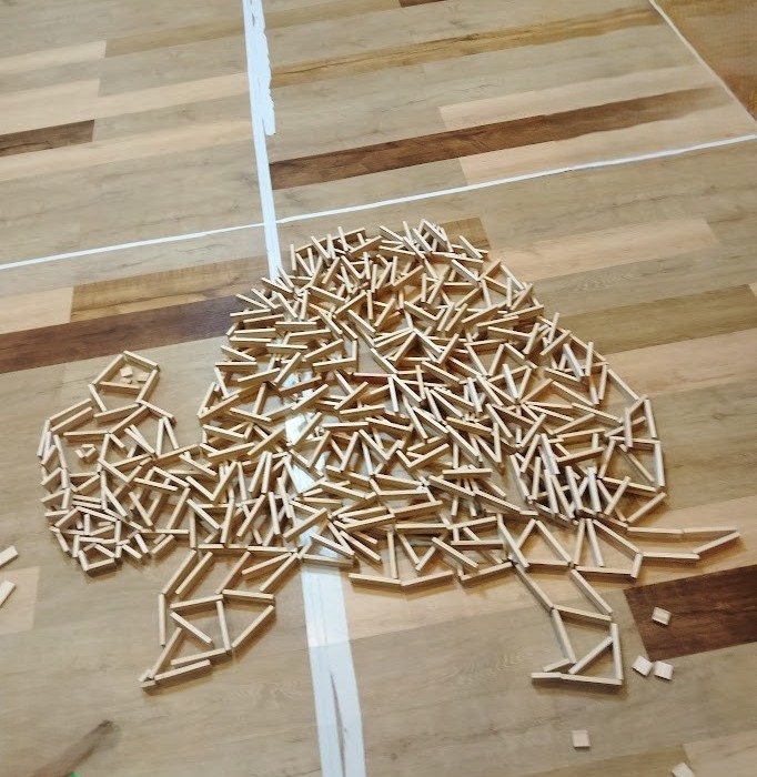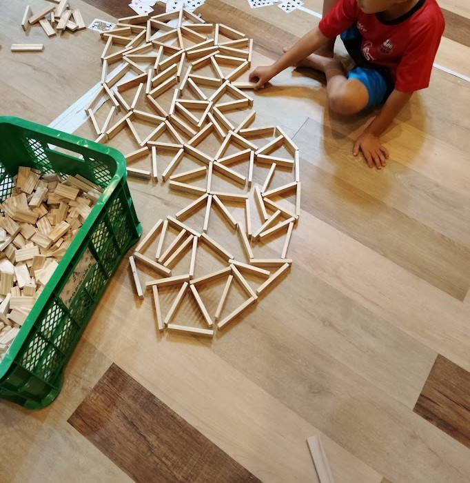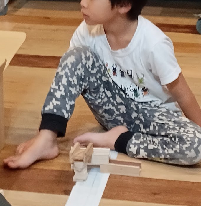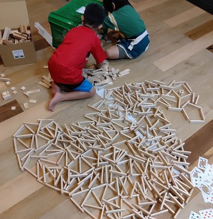 形に くみ上げて 楽しんでいるんですが 今日、 Hさんが 発想を転換。 縦に くみ上げて