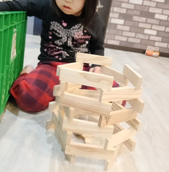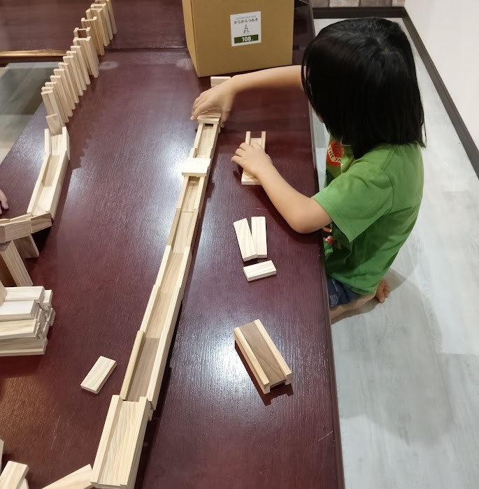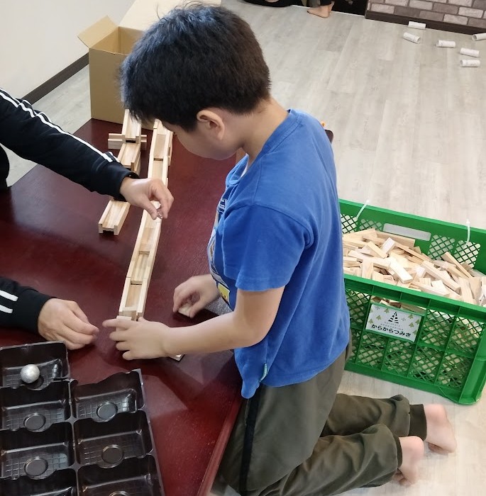 つみき & コロカラつみき。 楽しむべさ~ と 活動開始っ♪ お友達と一緒に ピタゴラ