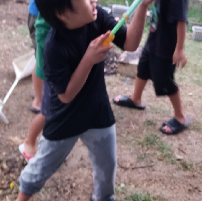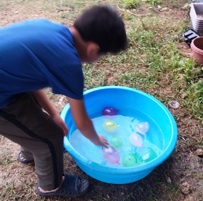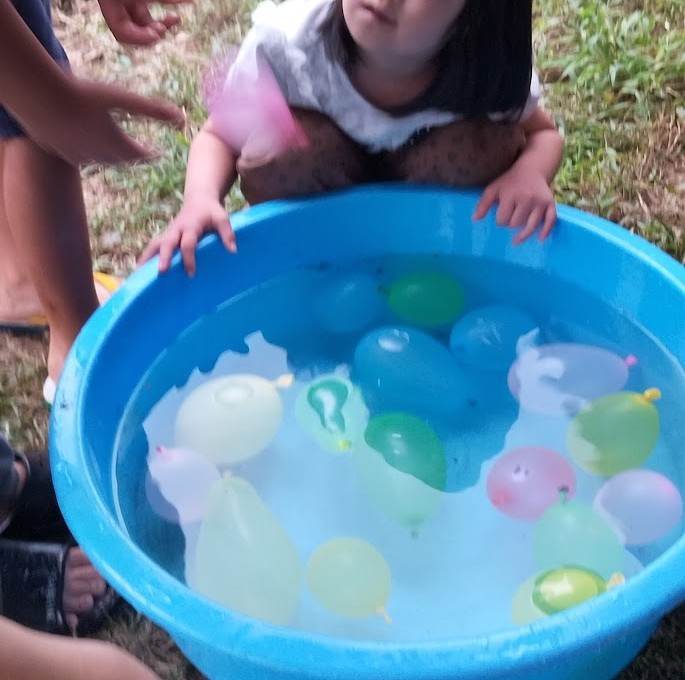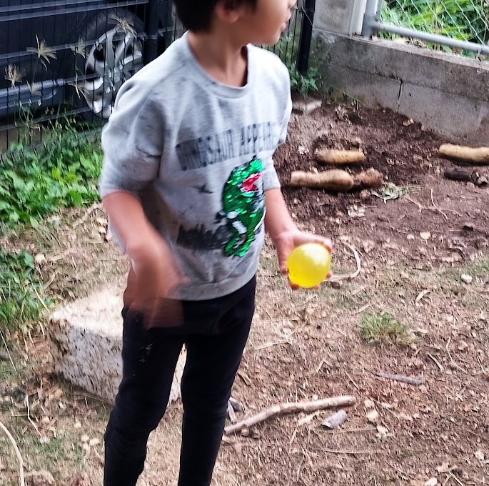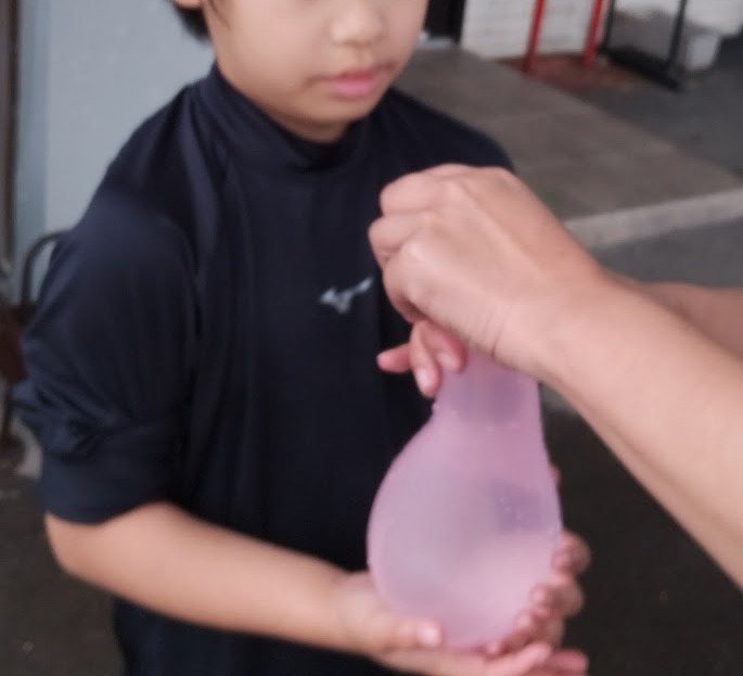 からの~ 水鉄砲 & 水風船っ (-_-) こどもは 風の子 元気な子っ! とは よく言った