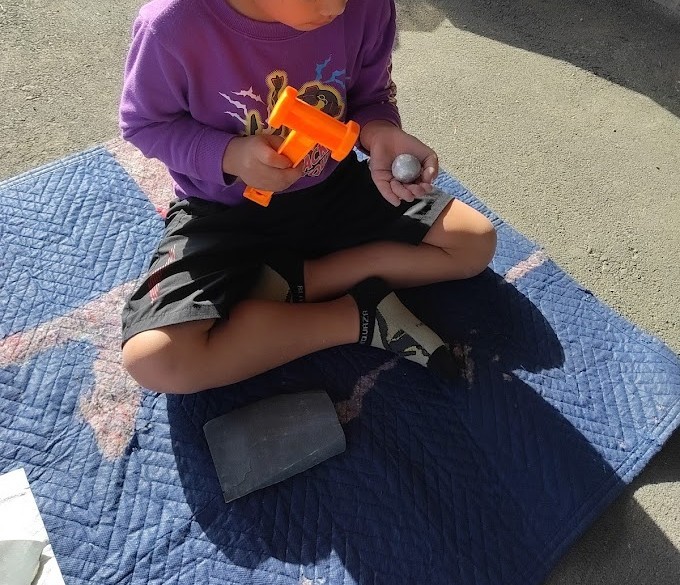 と プラスチックハンマー と アルミ玉を 手に すたすたと 歩いていく Kさん。(・ω・)ノ