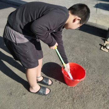 大胆に バケツに ぽい~っ する児童。 全く、 興味の ない児童 みな キャラ 発動中!