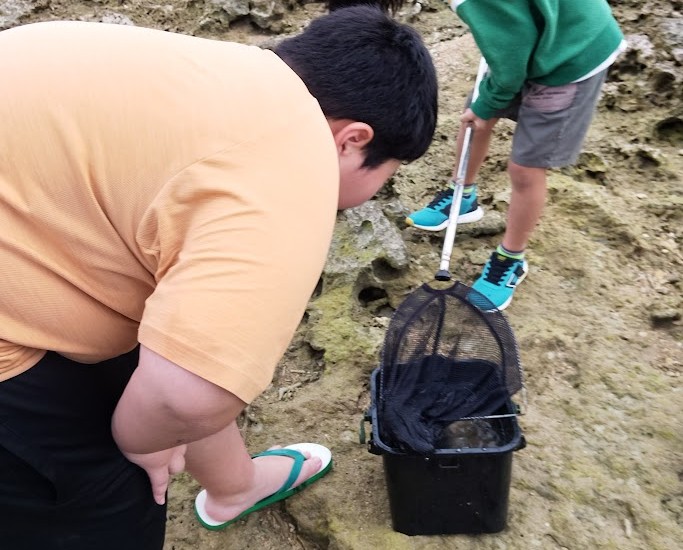 な・なんか 今日・・・ なまこ 多くねぇ? ちょっとこわい? のか 観察している児童、