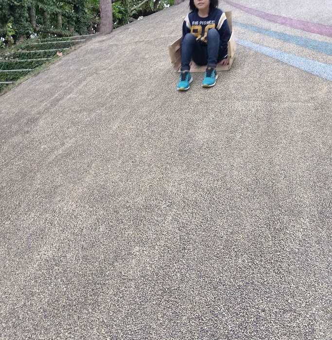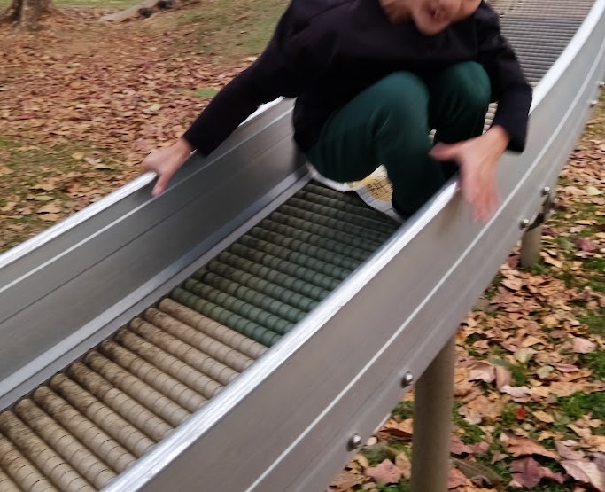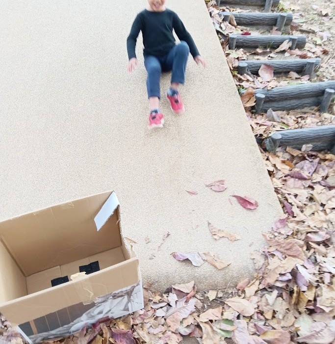 からの~ 滑り台では 勢いつきすぎて 着地後、 ぐるんぐるん 転がる~ 児童も。( ゚Д゚)!