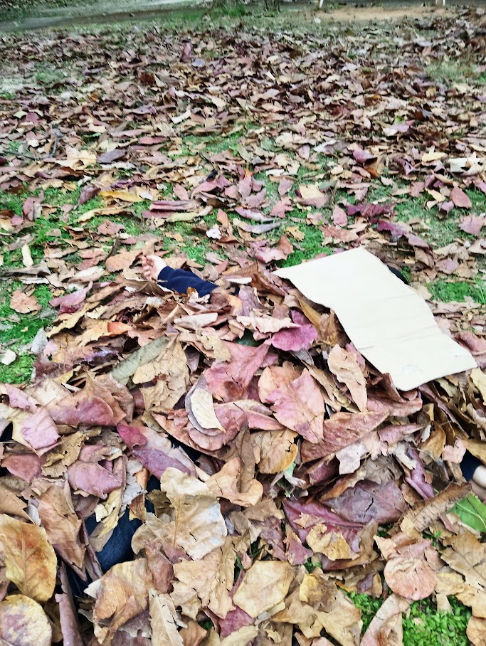 そんな中 いっぱいの 落ち葉に 目を 付けた Rさん。 ぴーーーん💡 と くーるーぅ!