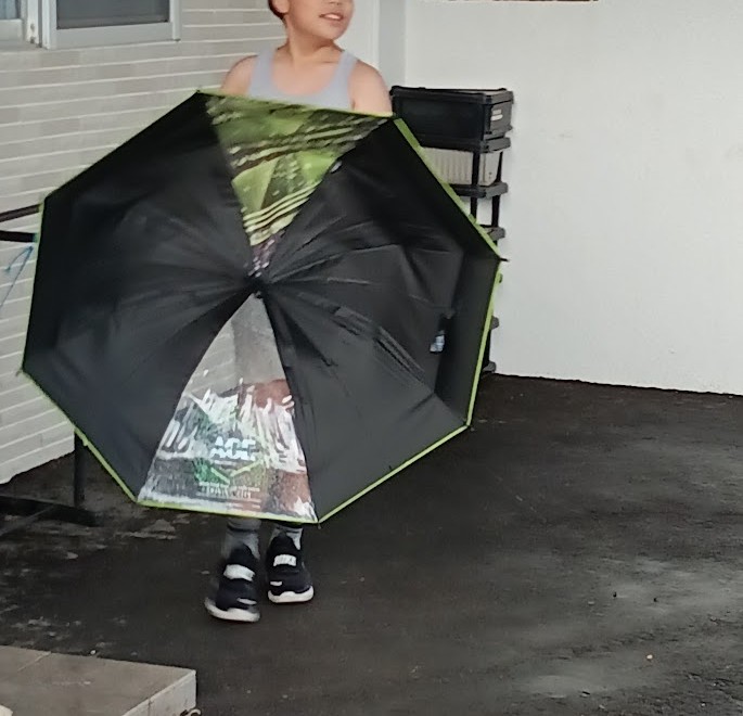 最初は かさに 向かって 丁寧に? かけていたんですが・・・ ふとした瞬間に ちょいーと