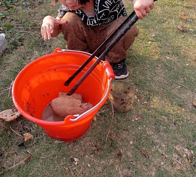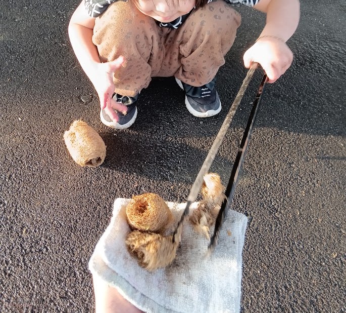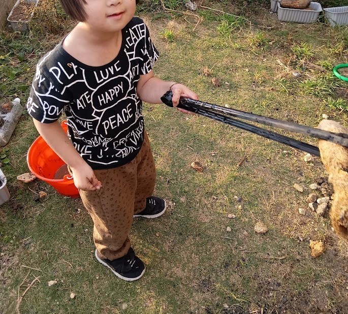 していたので それを トングで あちこちから 回収っ! 集めたあとは ビニールへ ポイッ!