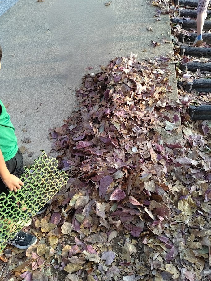 おりんすっ(≧◇≦)♪ みんなで 落ち葉を 集めて 交代で お互いを う め る ~ ?
