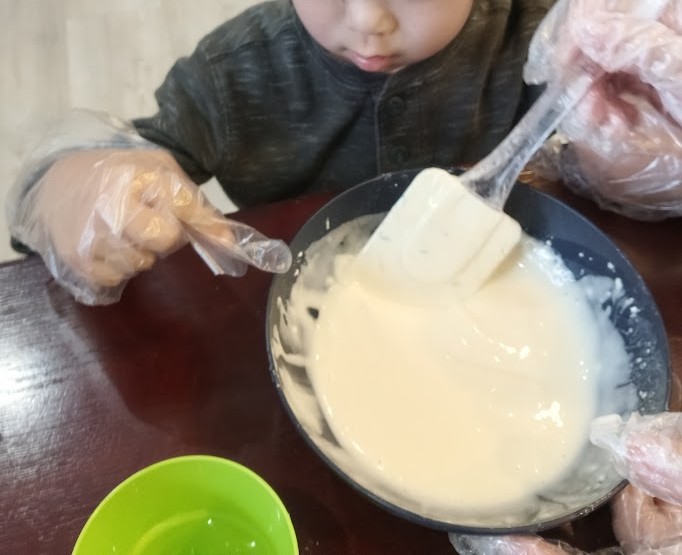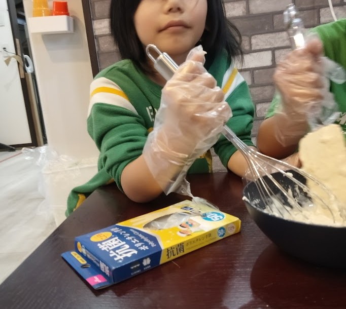 作ってみよ~(^O^)/ ということで~ まずは 手を 洗いまして~ 手袋を 装着っ!