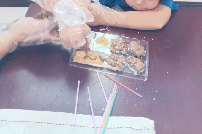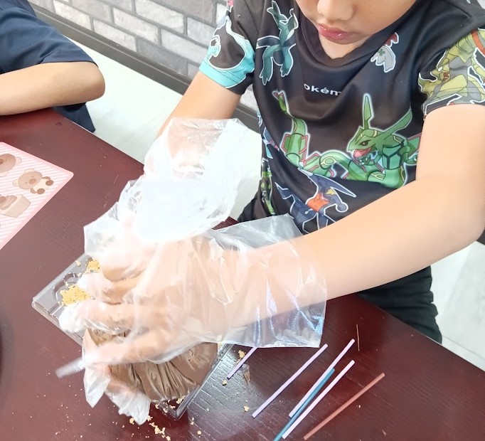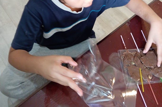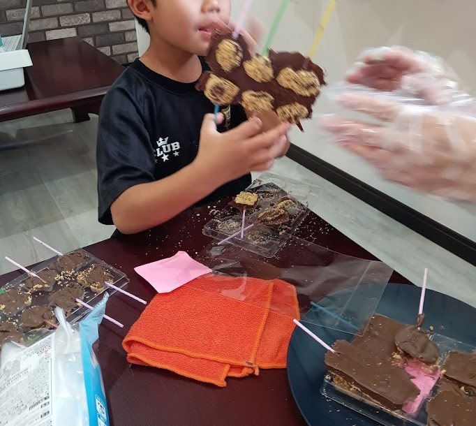 いい感じで できている児童、 全部 くっついている児童、 なぜか 板チョコを作っている