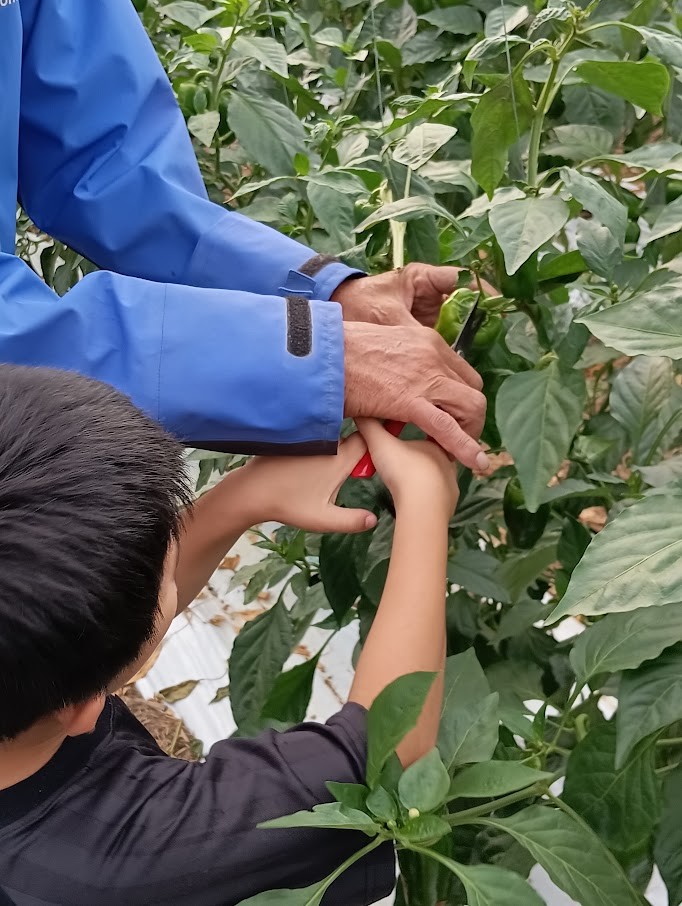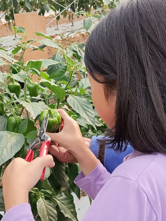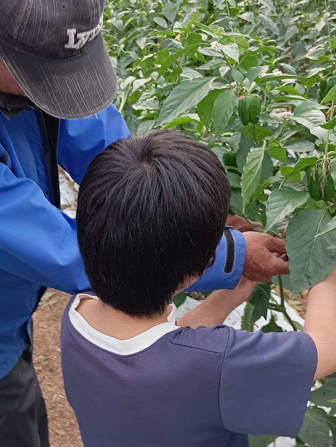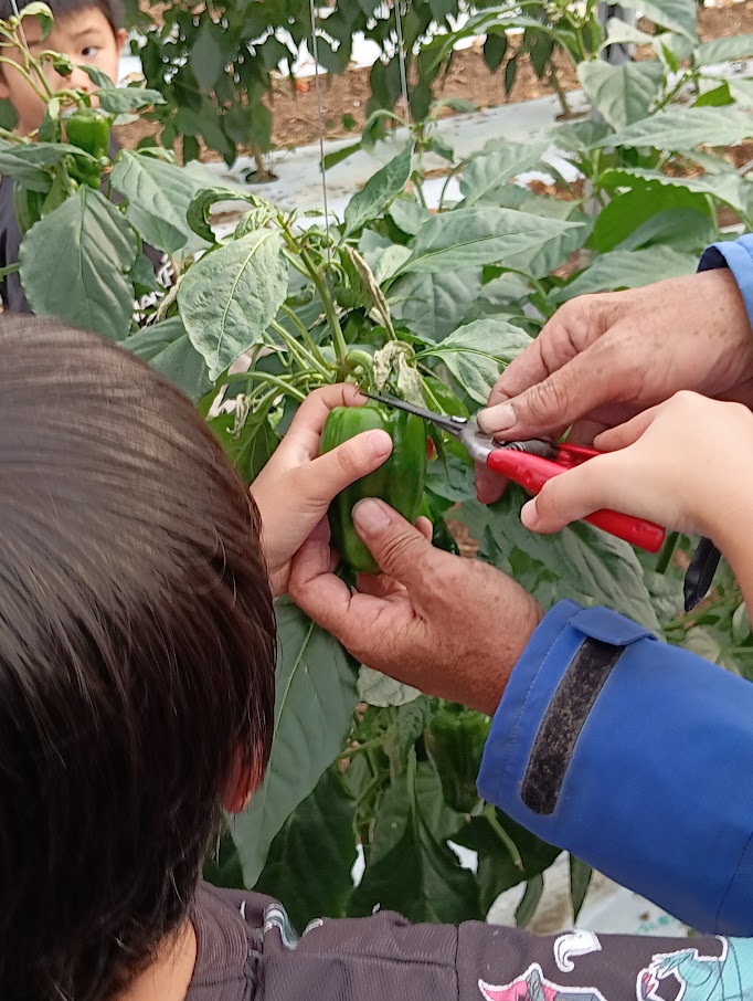 作っているんですか~? と尋ねると ピーマンだよ~ 収穫してみる? と お声かけ 頂き