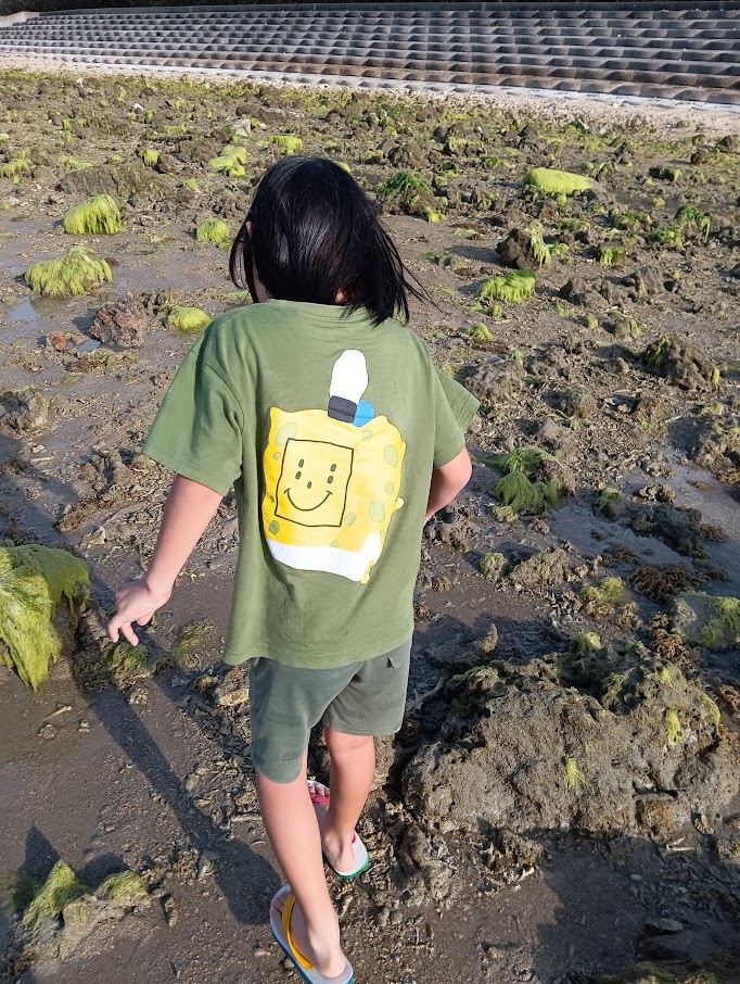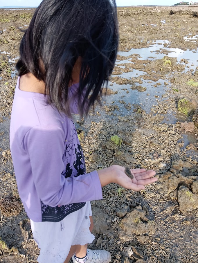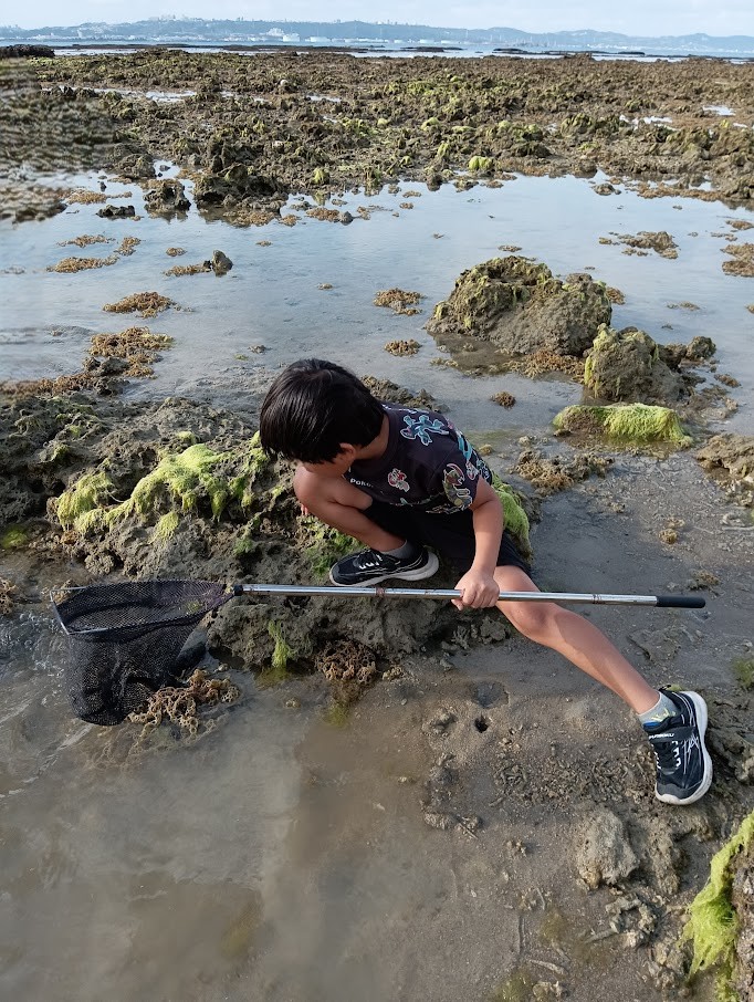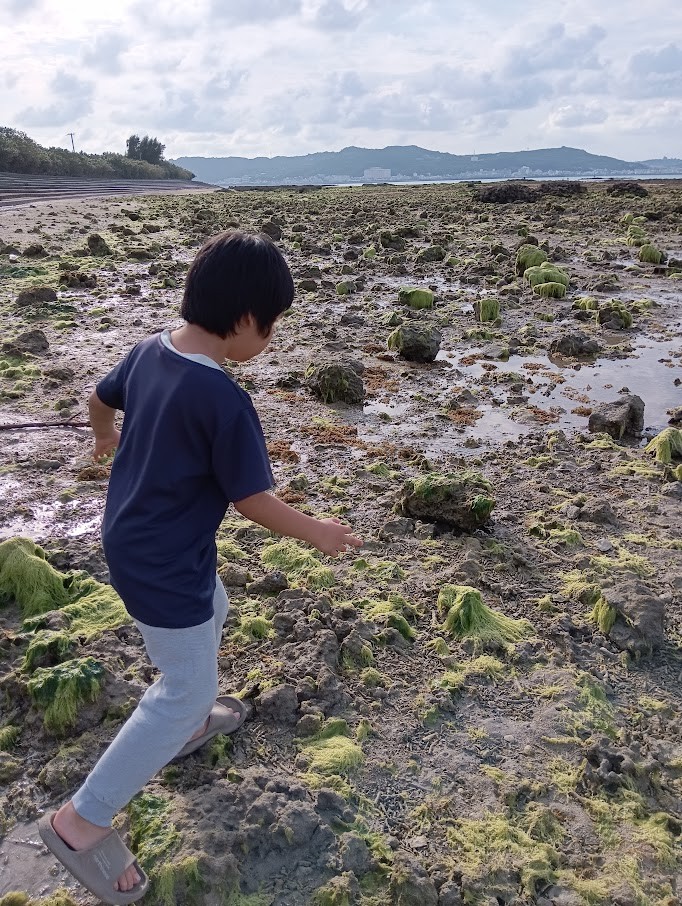 海に 到着やいび~ん♪ ナイスな 感じで 引き潮タイムっ! 大きな 石を ひっくり返し