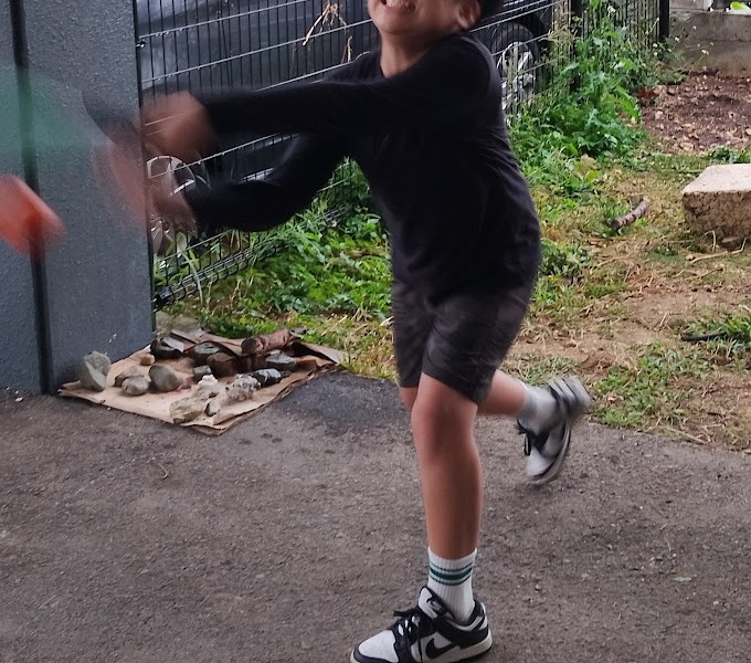 な 児童も。 Rくんは ラ・ポール広場で スタッフRと 野球に 全集中っ! バッターも