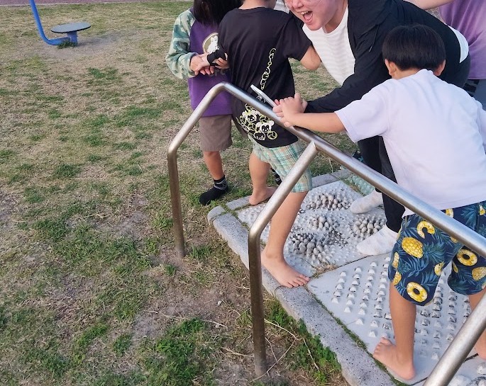 あと、余談なんですが くらじ広場には 足のつぼおしも ありまして スタッフSが トライ!