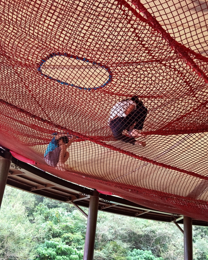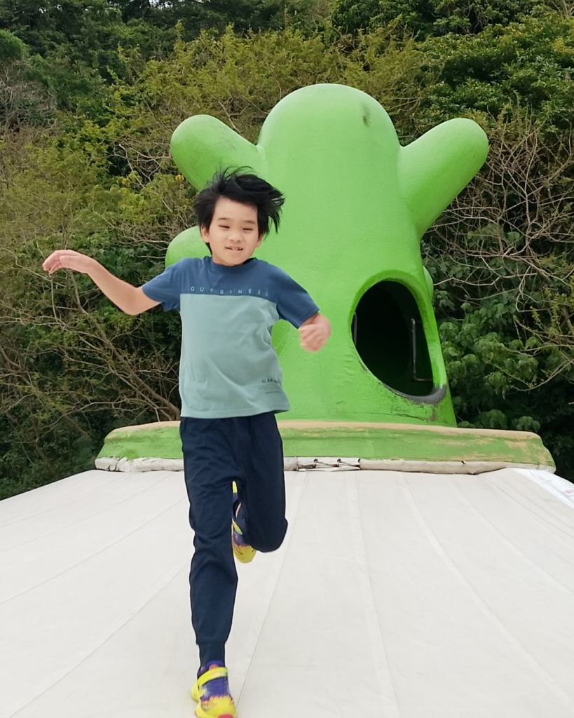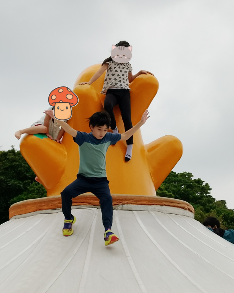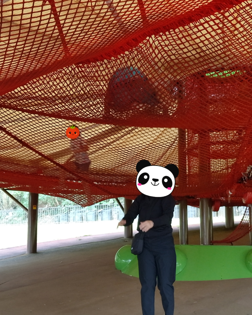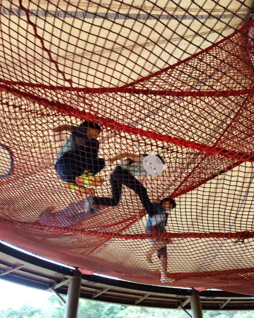 公園に到着すると、そこには巨大なトランポリンやアスレチックネットが!