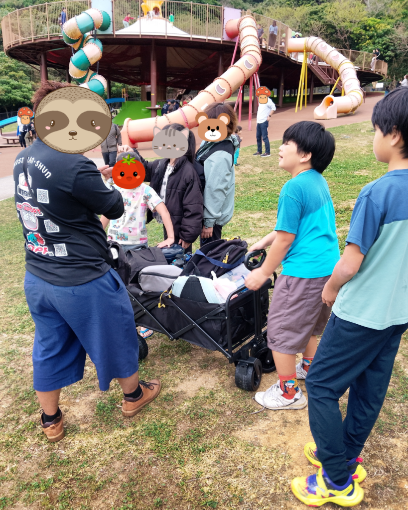 今日は、先週からみんなが指折り数えて待っていたビッグイベント!お友達同士の絆を深めるべく、大人気スポット「中城公園」へ遠足に行ってきました。