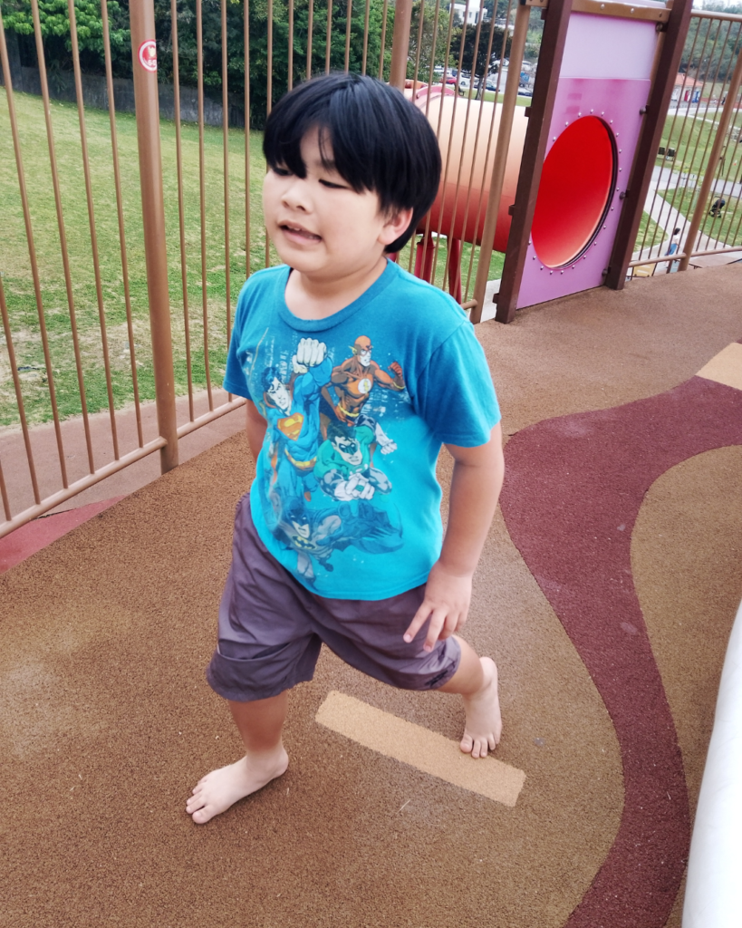 まずはみんなで『公共のマナー』を確認します。「滑り台の逆走はなし」「周りのお友達にぶつからないように」といった約束を指差し確認して、鬼ごっこの開始だ!!