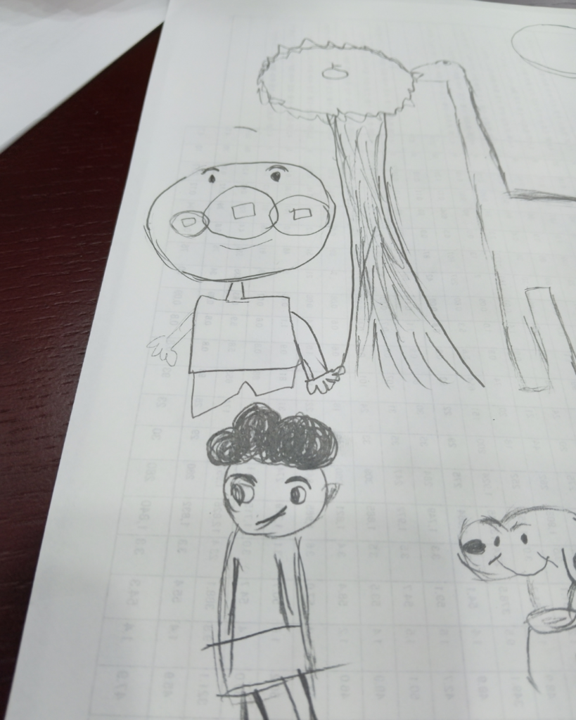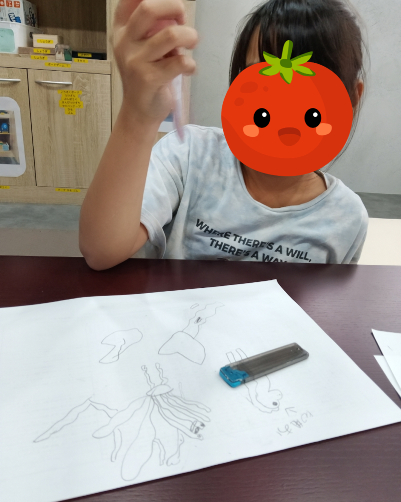 ラ・ポールSへの送迎中に、 「昨日はシャー芯を買ってもらったんだ〜♪」との言葉がMさんから出たため、Sさんが登所するまでの間、「一緒にシャーペンでお絵描きしない?」とあえて新しく買ってもらった物を使用できるワクワクを提案してみると…。