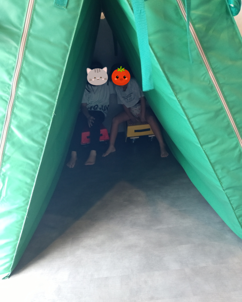 Sさんが登所すると昨日に引き続き、今日も「台車×跳び箱」のカスタマイズマシンが大人気!でも、昨日と同じ遊び方で終わらないのがラ・ポールSの子どもたちです♪
