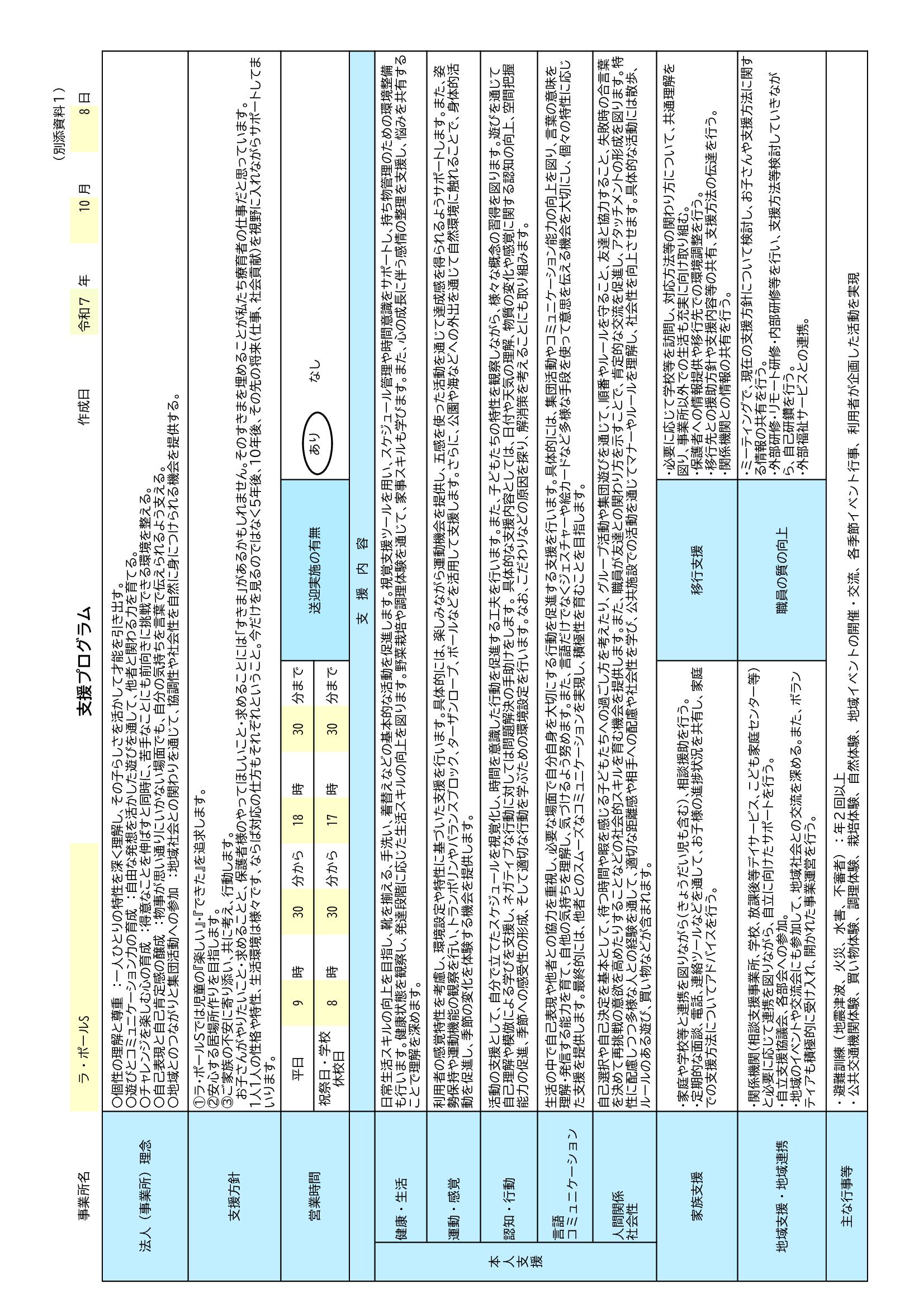 | 事業所名 | 放課後等デイサービス ラ・ポールS |